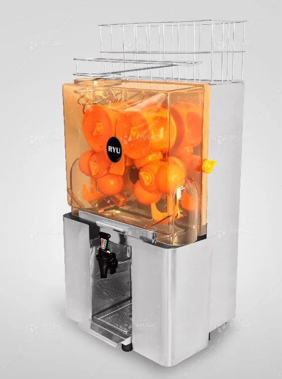 Cortador y exprimidor de naranjas 2000MS-A, máquinas extractoras de jugo de naranja de la marca RYU están diseñadas para trabajar de forma continua proveendo jugo fresco de naranja (naranjas peladas o sin pelar). Son muy usadas en Hoteles, Juguerías, centros comerciales, restaurantes, tiendas recreacionales, etc La máquina automáticamente lleva, corta y extrae el jugo de naranja en un solo proceso, y es fácil de manejar. Posee eficiencia de avanzada y un alto rendimiento, además de reunir requisitos de higiene y seguridad.