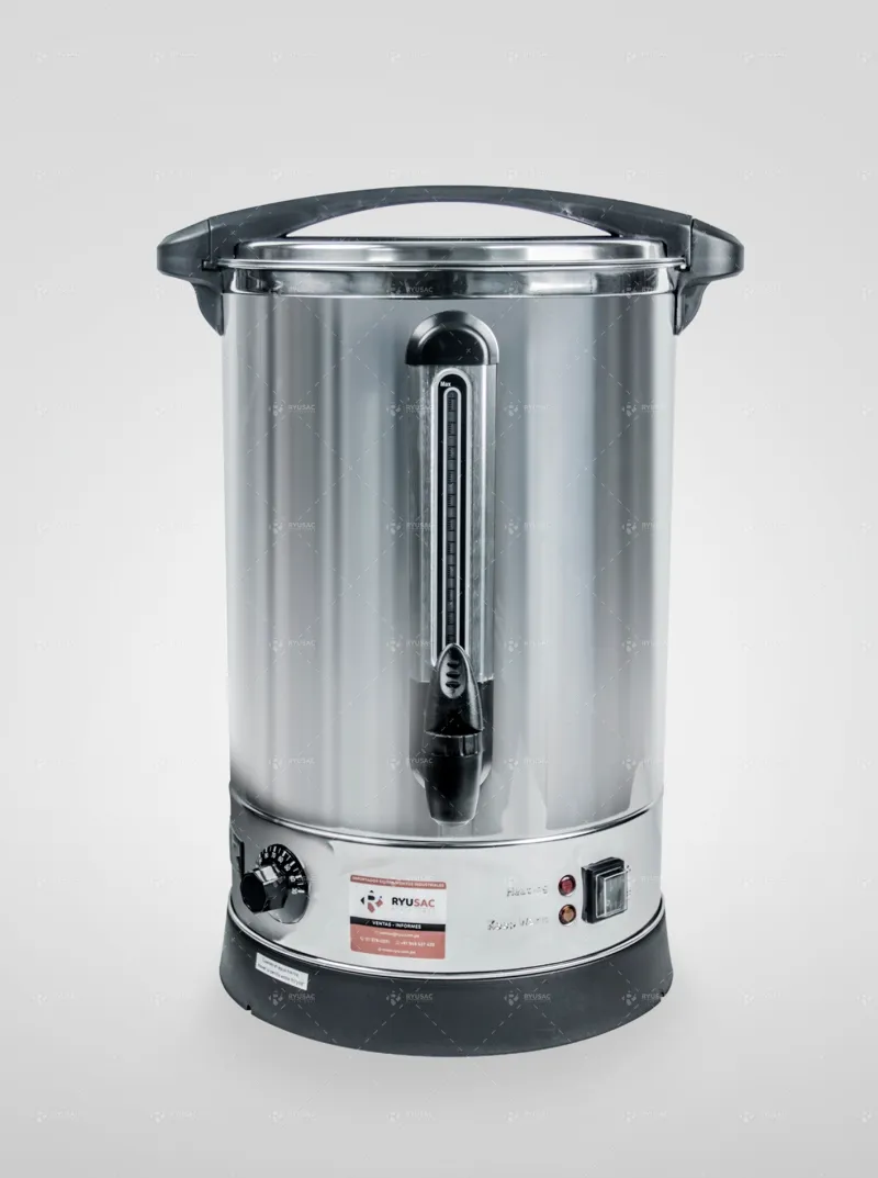 El hervidor de Agua RYU está fabricado en acero pulido e inoxidable y caño metálico, para dar una larga vida a este producto y sumado a su diseño estético conformarían el equipo ideal que usted está requiriendo para su negocio. Con un cuidado apropiado y un buen manejo su nueva compra tiene muchos años de buen funcionamiento. Está diseñado para preparar rápidamente bebidas calientes en lugares como hoteles, colegios, oficinas, restaurantes, Snacks y todo tipo de reuniones y lugares que satisfagan a sus clientes o comensales.Ficha técnica de Hervidor de Agua Eléctrico de 20 Litros EW - RYU